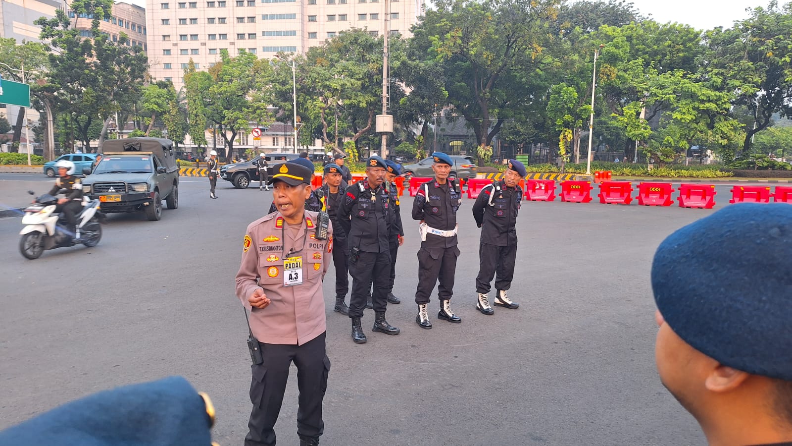 Apel pengamanan digelar pukul 06.00 WIB, di Taman Pandang, Jalan Merdeka Barat, Kecamatan Gambir. Waka Polsek Sawah Besar, AKP Tutuk Krisdianto Wibowo, memimpin langsung apel siaga pengamanan tersebut.